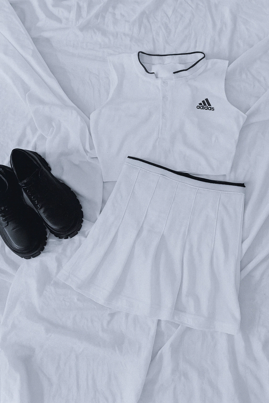 Descubra o nosso Conjunto Upcycling Autoral Adidas, que combina uma elegante polo cropped com uma saia de pregas. Este conjunto é perfeito para quem busca estilo e sustentabilidade em uma única peça.