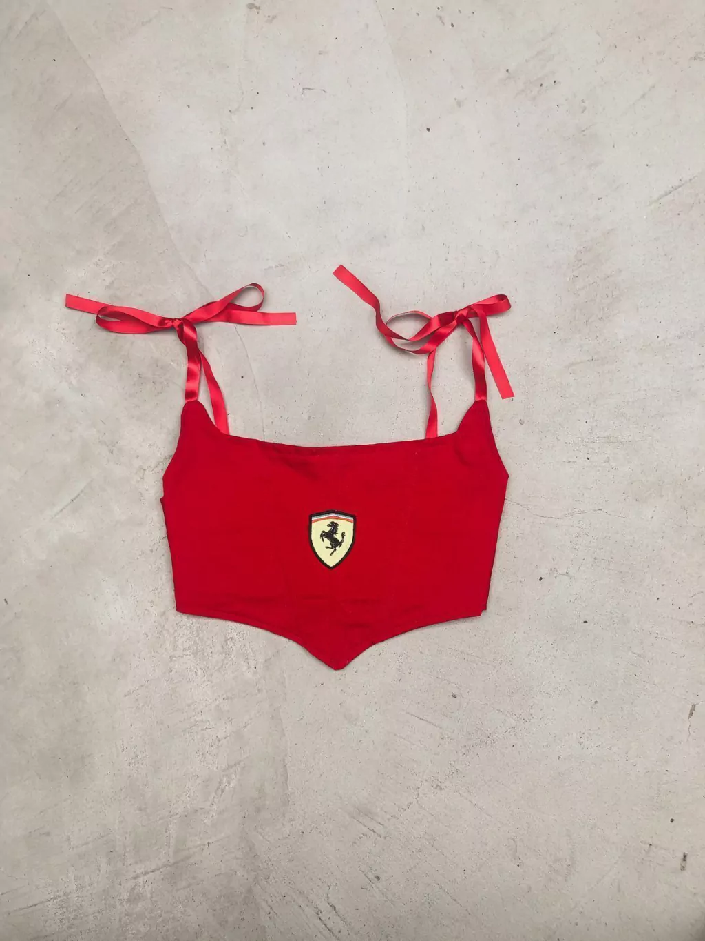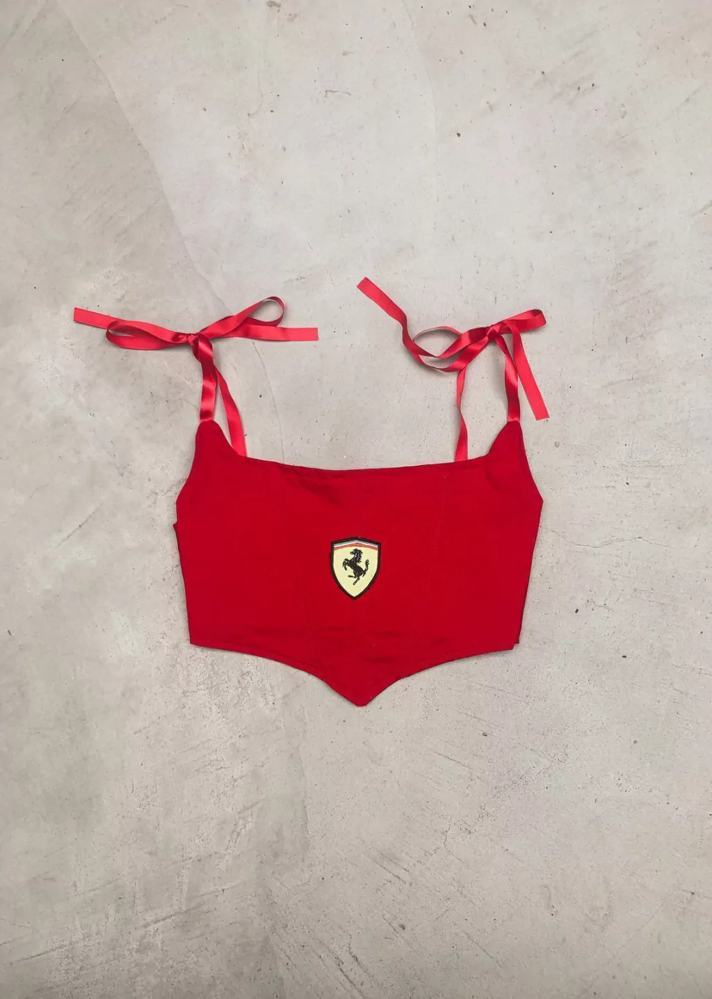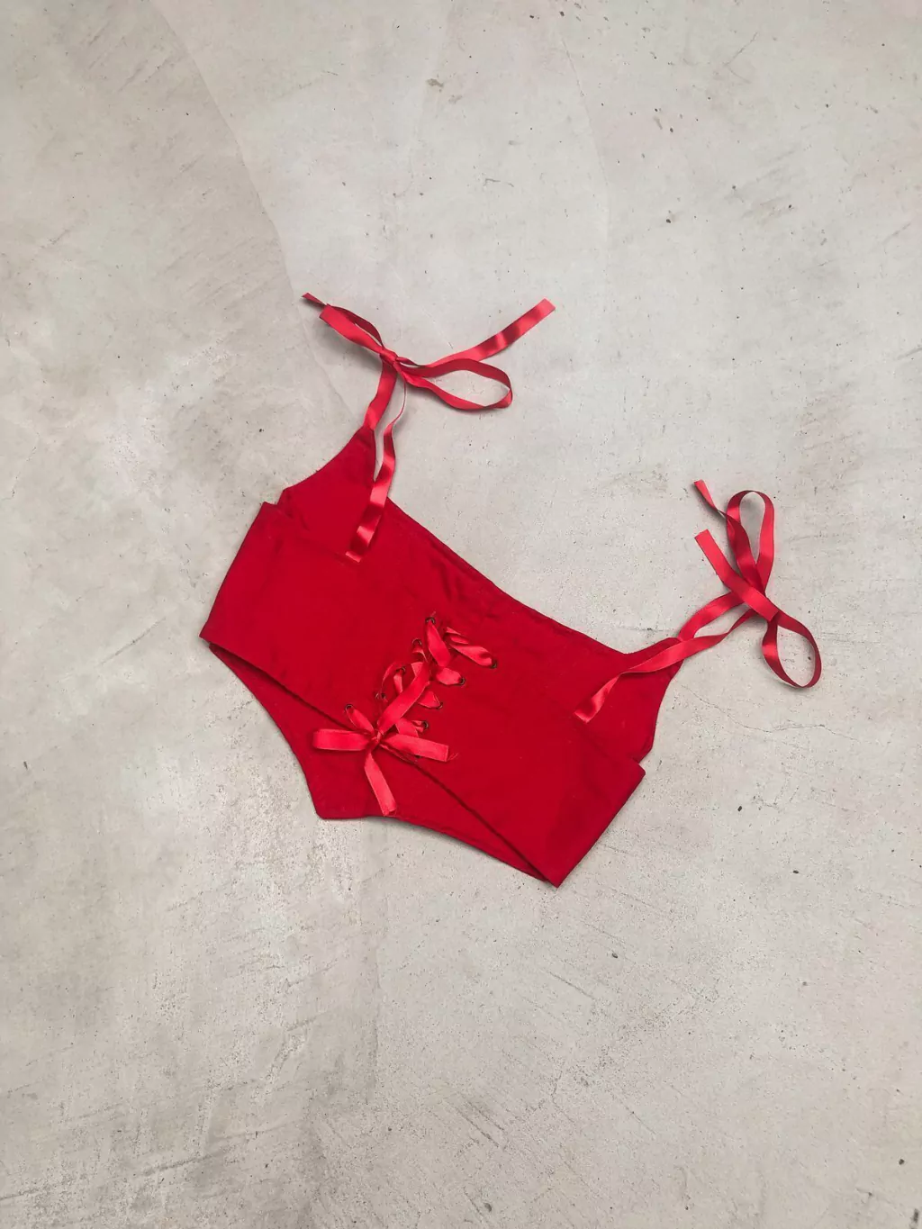 O Corset Estruturado Upcycling é confeccionado a partir de calças de sarja, oferecendo uma abordagem sustentável à moda.