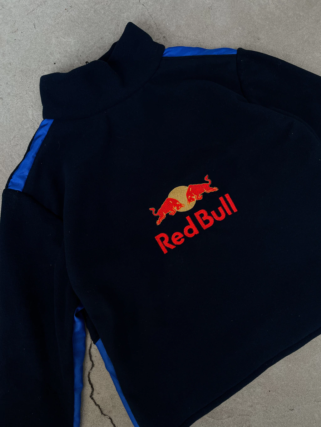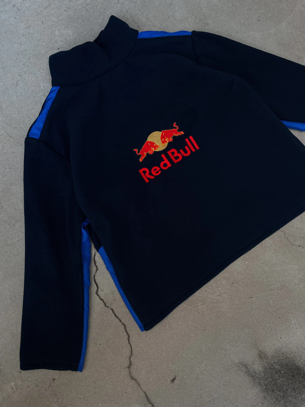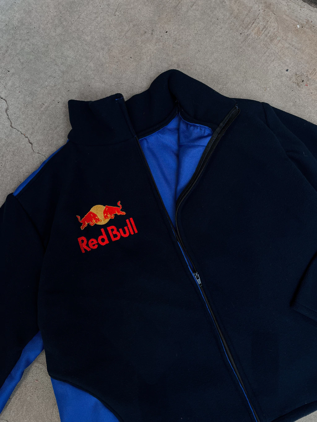 Jaqueta Upcycling RedBull com designer autoral. Bordada na frente, na gola e nas costas. Possui forro resistente e fechamento em zíper. Uma peça quentinha e confortável, modelo unissex.