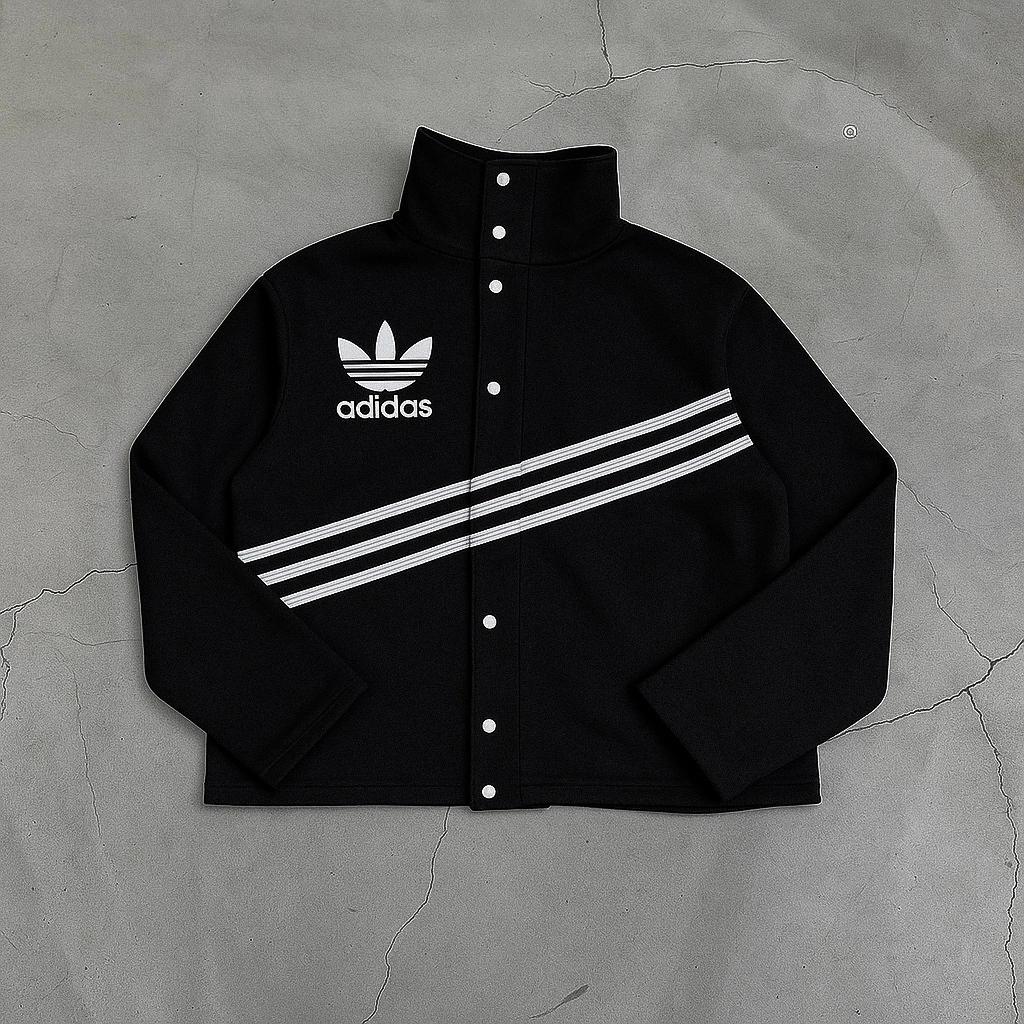 Jaqueta Feita de Soft, as listras são upcyclings que reutilizamos. Possui forro e fechamento em botões e velcro.