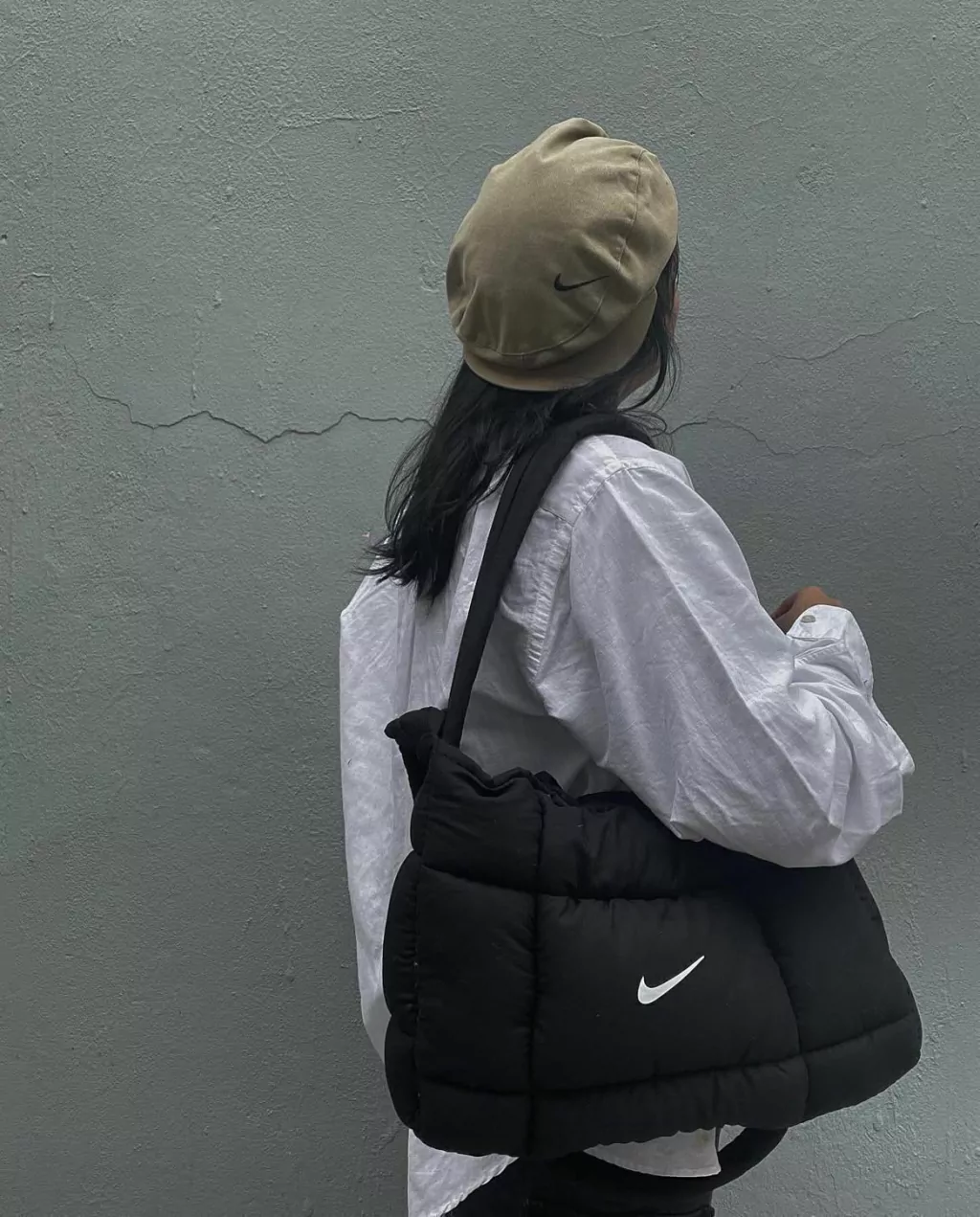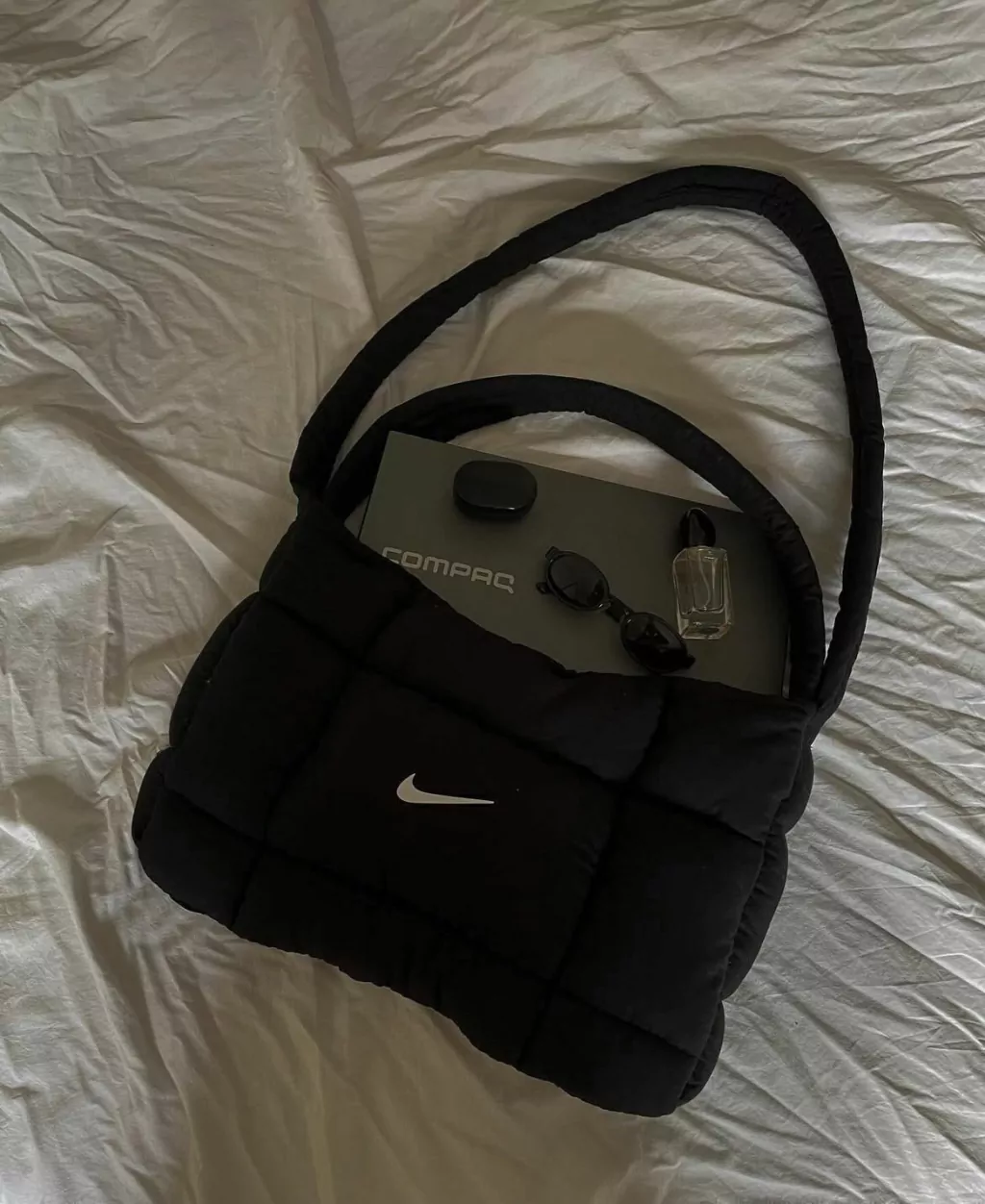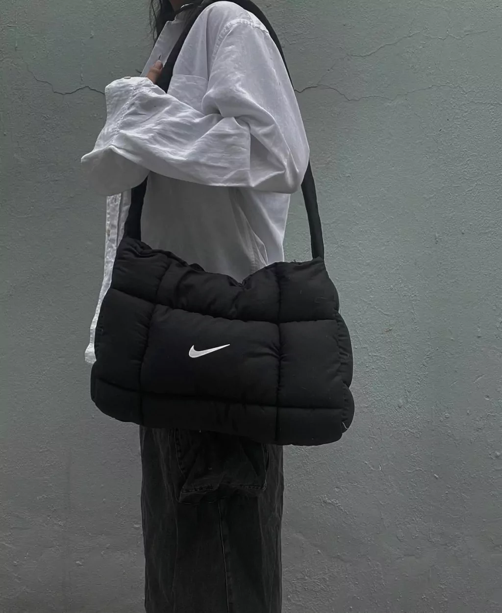 Possui duas alças: uma para uso transversal e outra para o ombro, facilitando o transporte. O fechamento em zíper garante a segurança dos seus pertences.